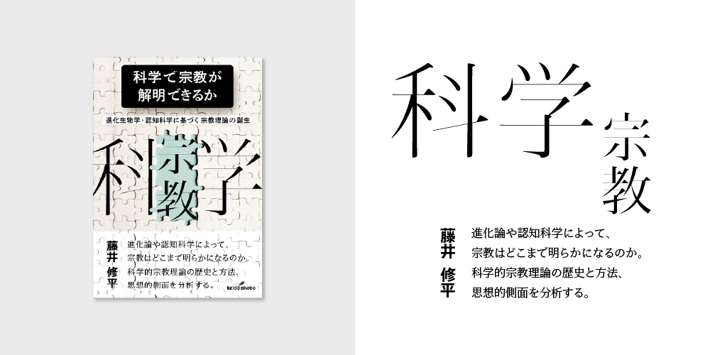 宗教の科学的研究の基礎を知ることができる本書の表紙では、デザイン要素として大きく使われている「科学」「宗教」と、帯部分の著者名およびキャッチコピーにタイププロジェクトのフォントが使用されています。