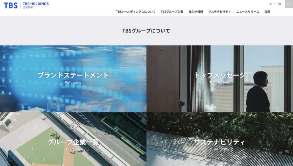 TBS Gothic TP, the corporate font of TBS, is used extensively on the site.
