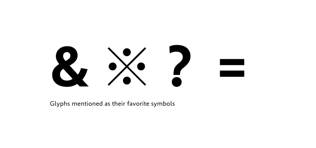The question “What is your favorite glyph among numbers and symbols?” was asked to staff at the Type Project.