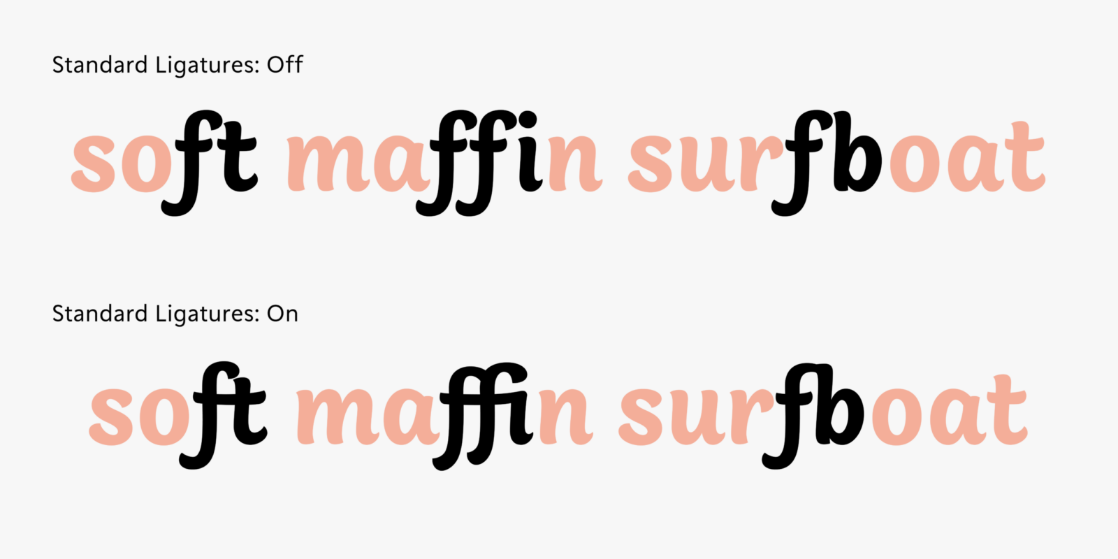 TP Apricot includes not only basic ligatures such as “fl” and “fi,” but also ligatures such as “ft,” “fb,” and “ffi” that are not included in the normal StdN version.