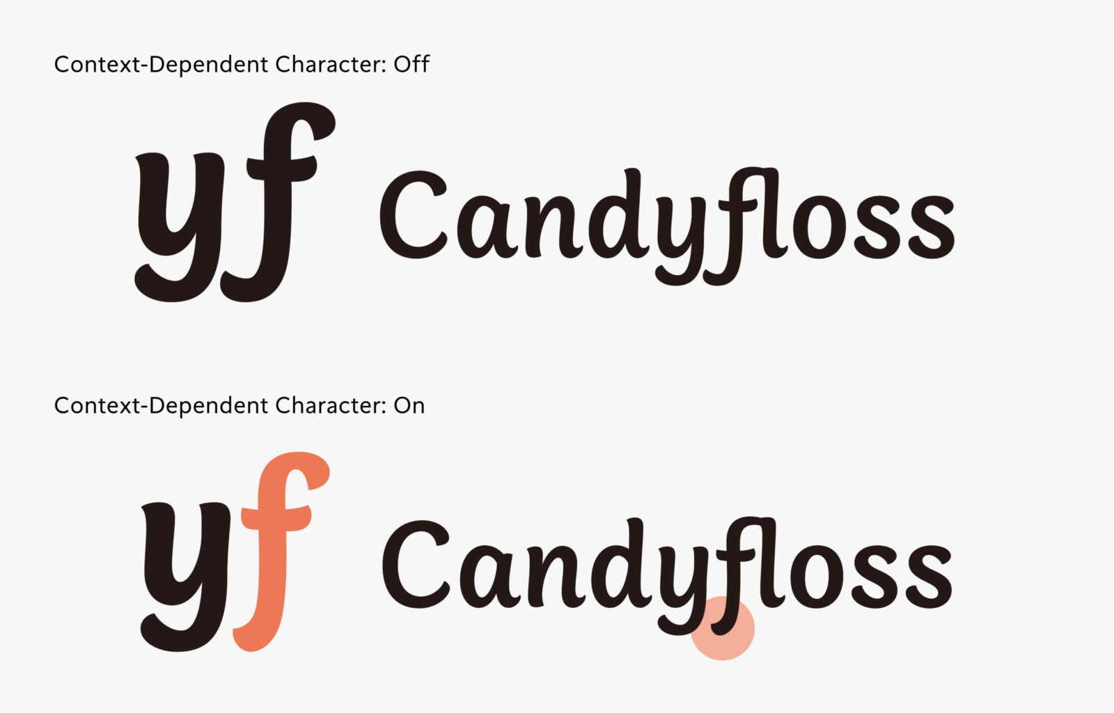 Therefore, we prepared an alternate glyph for “f” with a shorter descender as a separate design, and set it up so that “when ‘f’ appears next to the right of ‘y,’ it switches to the ‘f’ with the shorter descender.” This enables reasonable typesetting while maintaining distinctive character shapes.